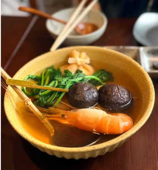 关东煮里的罗氏虾又大又新鲜,福袋里满满芝士。釜饭里料也超多。吃完又满足又舒服。