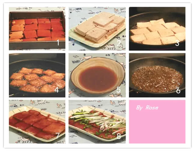 一、豆腐一定要用较硬的豆腐,如果用嫩豆腐,一来嫩豆腐没有气孔吸入腌料,二来容易破碎不好煎,而硬豆腐周身都有些孔,能让腌料走入内里的,煎时也不易破碎;