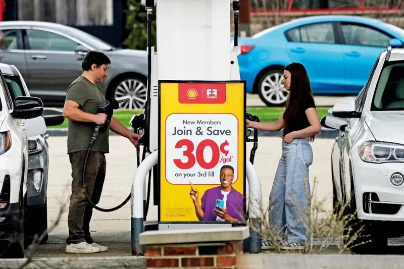 4月15日,人们在美国伊利诺伊州一处加油站加油。图/视觉中国