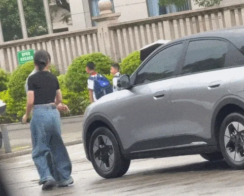 保安打完之后,也有些慌了,站在车头旁边,来回踱步,时不时看向女子,眼神里满是紧张,估计也是气头上冲昏了头,事后才觉得后悔。