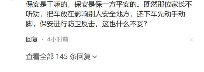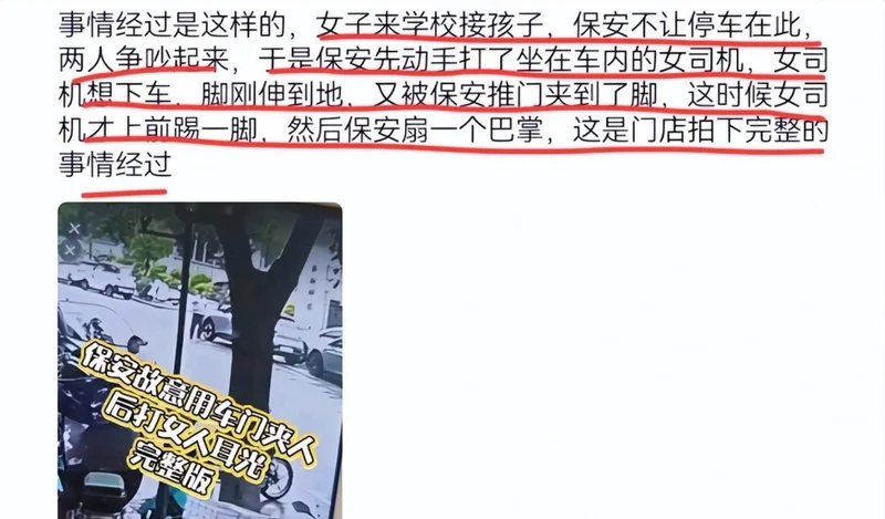 当时就有网友猜测,事发地点在学校附近,女子应该是来送孩子上学的,可能是违规停车,保安上前劝说,女子不听,两人起了冲突,最后才动手。
