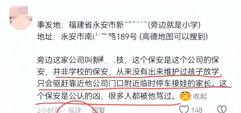首先,大家一直猜错了两个关键信息:事发地点不是学校门口,而是学校隔壁的一家公司门口;保安也不是学校保安,而是这家公司的保安。
