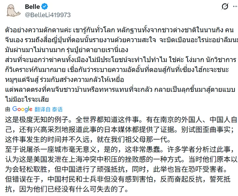 其中,有泰国网民怒喷:“日本人好双标,一边嫌弃别人没规矩,一边自己否认历史,否认南京大屠杀,淡化慰安妇,如此双标伪善之徒,有什么资格自以为道德优越!”