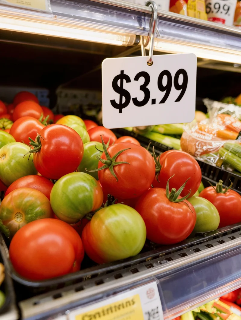 今天路过 Food Basics 买牛奶,顺便买点菜。一看,还泛青的普通小破西红柿,$3.99/lb!惊讶之余差点儿笑出声来,这世界这是怎么了?
