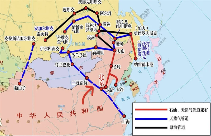 在东北方向,中-俄“西伯利亚力量”天然气管道于2019年投产、2024年全线贯通;西北方向,中国—中亚天然气管道三线开通;西南方向,中缅油气管道2013年正式通气、2017年正式通油;中国从中东地区进口油气,既可以走马六甲海峡的海上运输,也可避开马六甲海峡,从缅甸经陆路直接输送到中国。