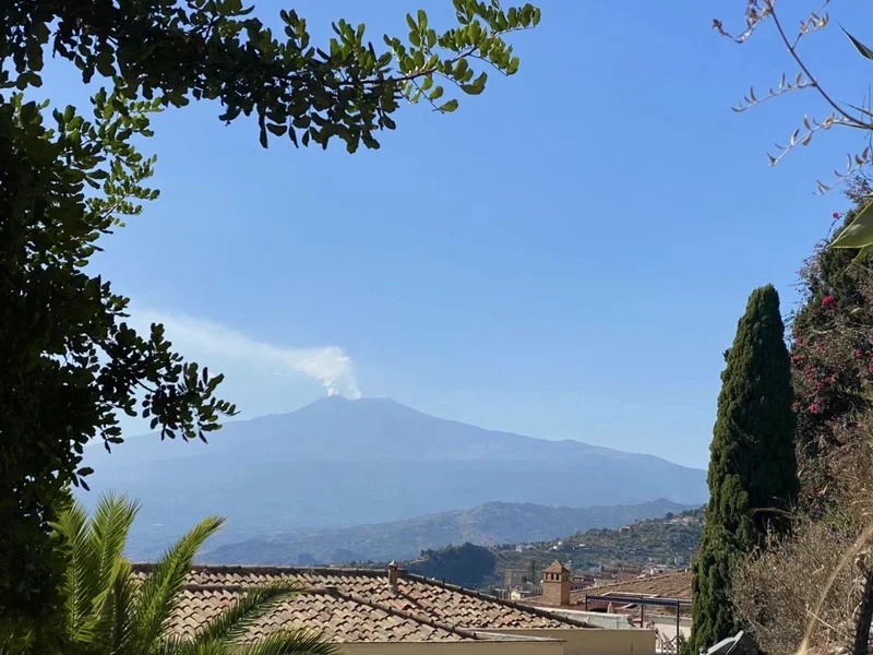 烈日咸盐,不远处的Mount Etna 火山还不停地冒着热气。