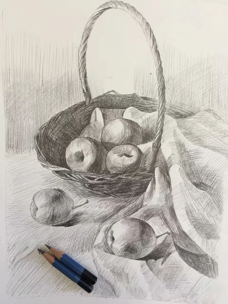 我喜欢排线时笔尖与纸张摩擦时发出的沙沙声,素描就是无数线条的叠排,一个个物体在无数次叠排的线条中逐渐丰满、立体,从最初的轮廓,到渐渐浮现的明暗,再到最后呼之欲出的质感,让人很有成就感。