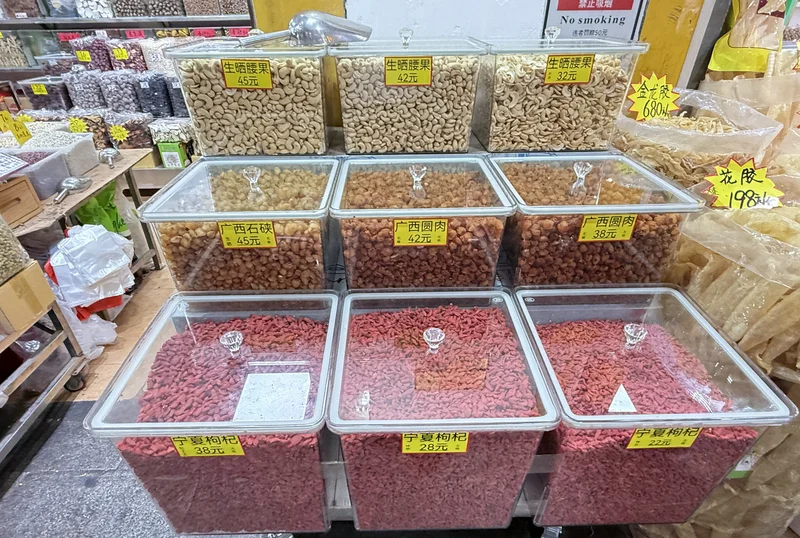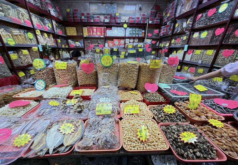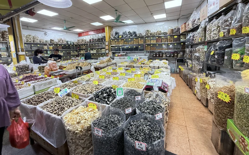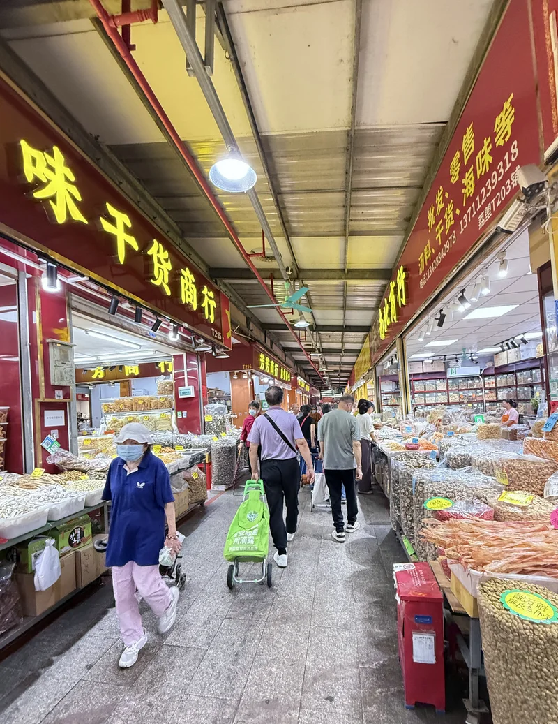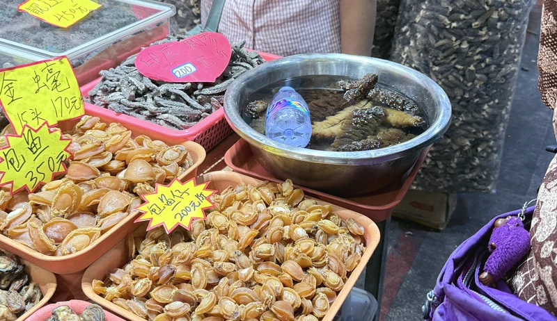 本来我们几个人去市场时,首先就经过干货铺,但水产鱼档图多,能形成贴,就先上水产贴了,现在回到干货铺,啊,鲍参翅肚乜都有。
