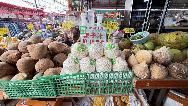走去水果摊先,大姐抛下抛下个大柑,喂,买定离手?我发现自己好厉害,有张图是大柑离手拍下来的,拿去做封面了。