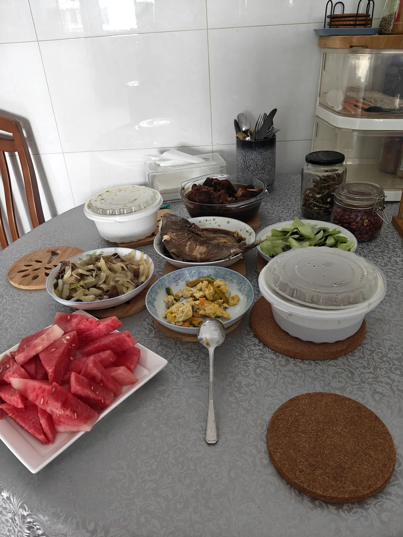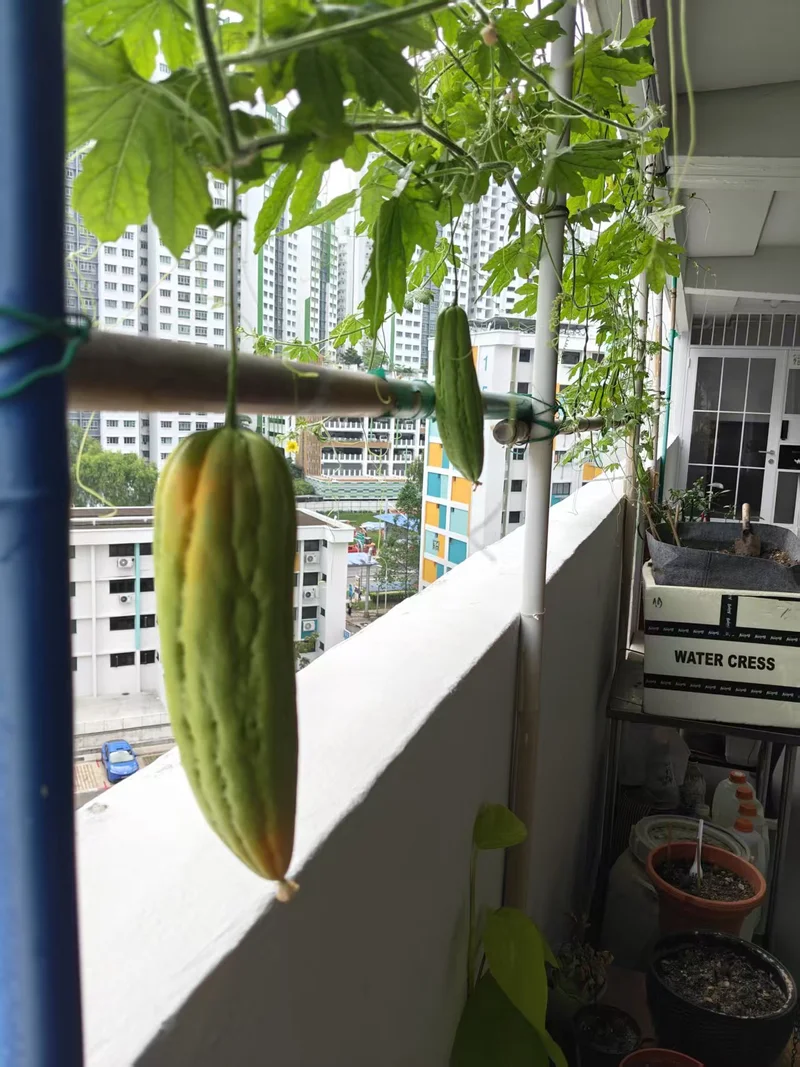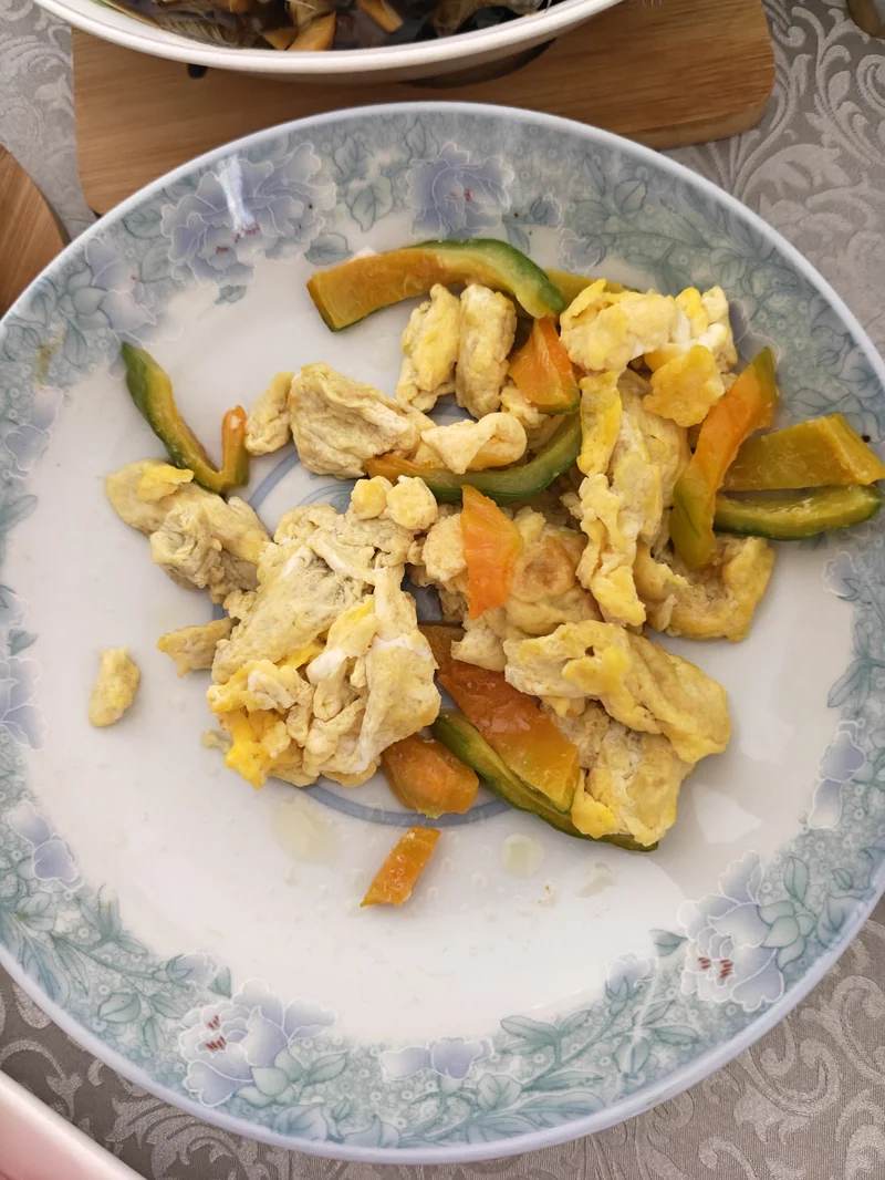 自产的苦瓜炒蛋用, 苦瓜虽小, 但是绿色食品, 蚊子再小也是肉。