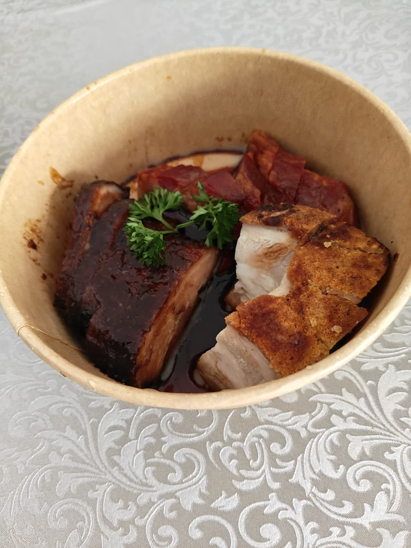 点外卖, 顺便加了一份烧肉和叉烧肉, 换换口味, 毕竟店里的味道强过自己煮的。