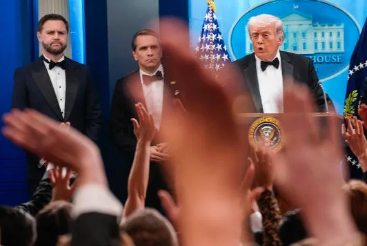 当地时间4月25日深夜,白宫记者协会晚宴枪击事件发生后,美国总统特朗普返回白宫召开记者会回应此事。