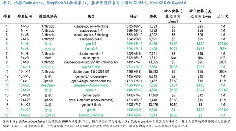 根据LMArena Code Arena排名(截至2026年4月24日):