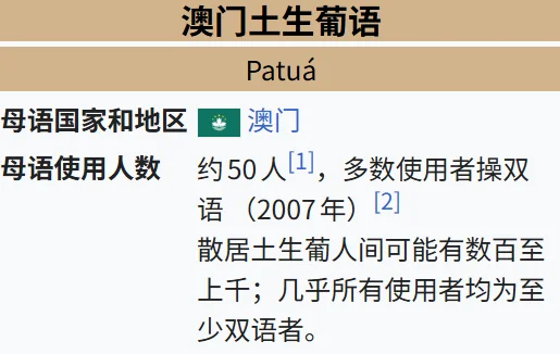 随着通婚代际延续,一个稳定的混血社群逐渐成形。衡量一个社群是否真正形成的标志之一,是它是否发展出了自己独特的语言。土生葡人确实有,那就是Patuá,一种以葡语为基础、大量融合粤语词汇、还夹杂着马来语、僧伽罗语和少量印度方言的克里奥尔语。它的语法大大简化,发音更接近粤语的音韵习惯。