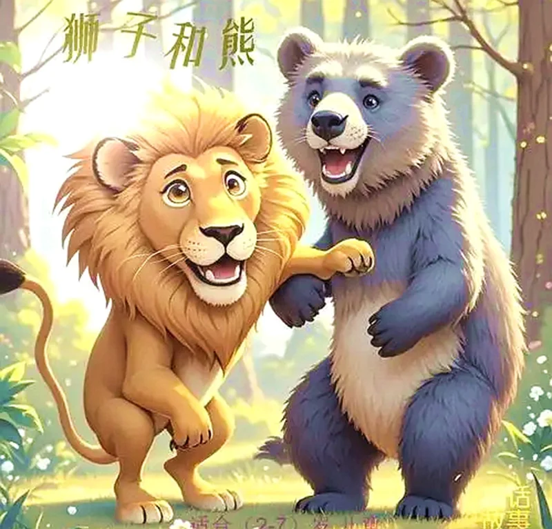 从前,狮子和大熊是好朋友,他们住得很近,很多时一起玩耍。有一天,他们突发奇想,在各自住地门前种了同一种小树苗。他们淋水、施肥好不勤快,过了几年,树长大了。