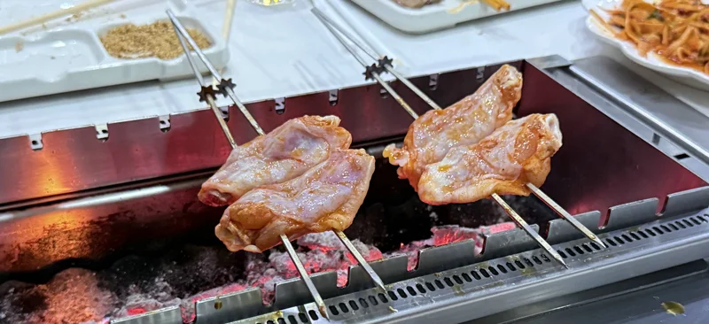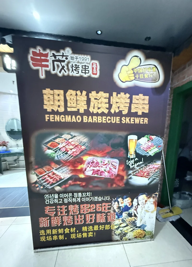 广州丰茂烤串(远景路店)是白云区主打朝鲜族无烟烤串的人气门店,位于韩国美食街,适合聚餐与深夜小酌,全自动无烟烤炉、羊肉现穿、朝鲜族风味。