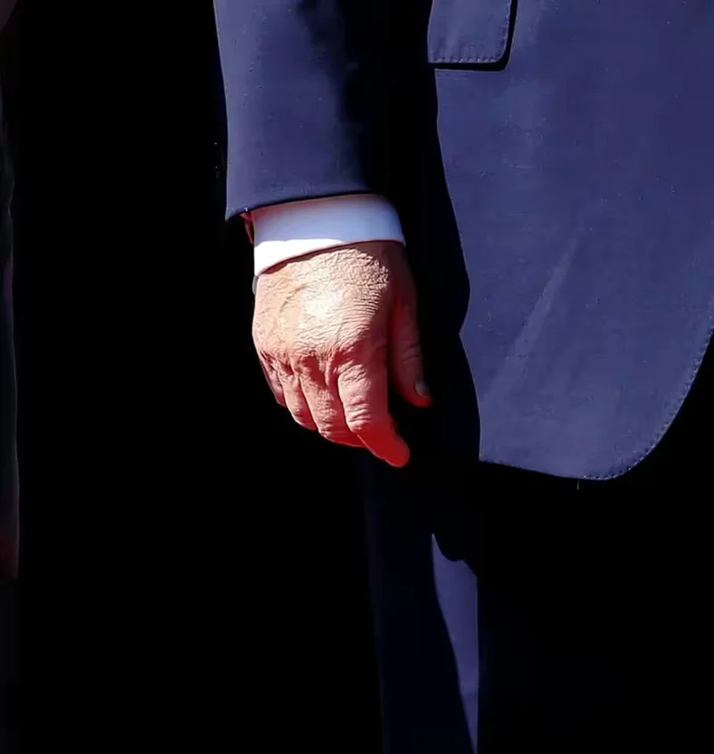 有记者在社交平台上爆料,特朗普似乎在手上涂了粉底,试图遮盖大面积的淤青,但由于遮瑕效果一般,反而让手部看起来更加“色彩斑斓”。