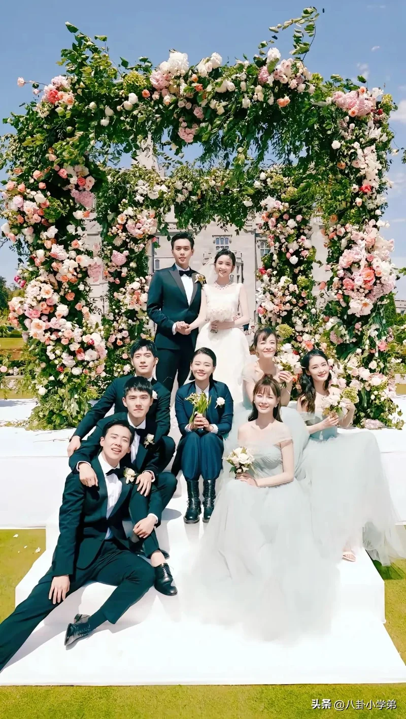 那天,马思纯穿男装扮司仪,新郎团俊气,新娘团貌美。
