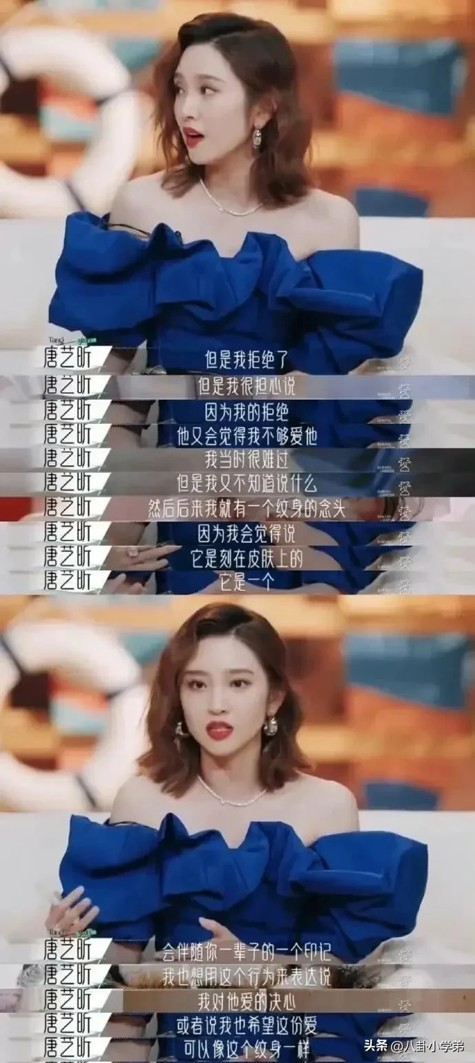 像被张若昀第一次求婚,唐艺昕踏不出那一步,但为表爱他的决心,便拉着张若昀一起在脚踝处刻下纹身。