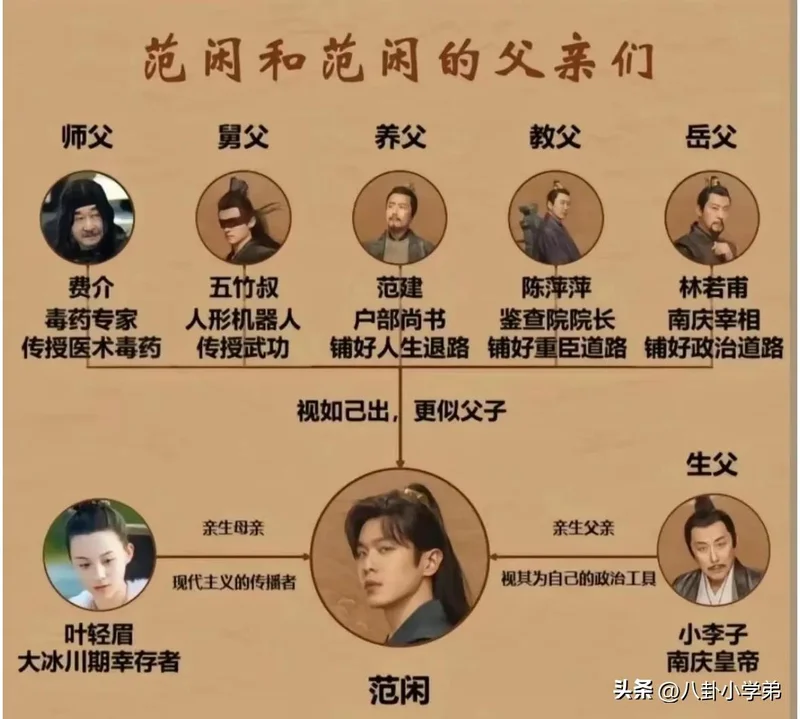 在电视剧《庆余年》中,范闲有六个爹护他周全。