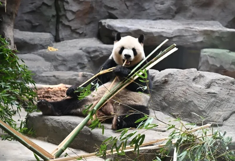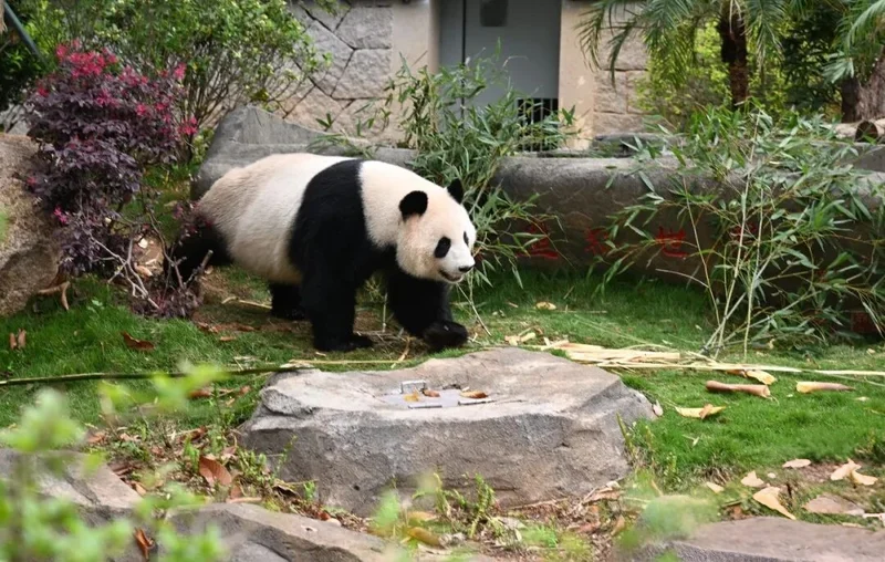 不少人来到大梦山的福州熊猫世界园区, 和『滚滚』们共赴一场春天之约。