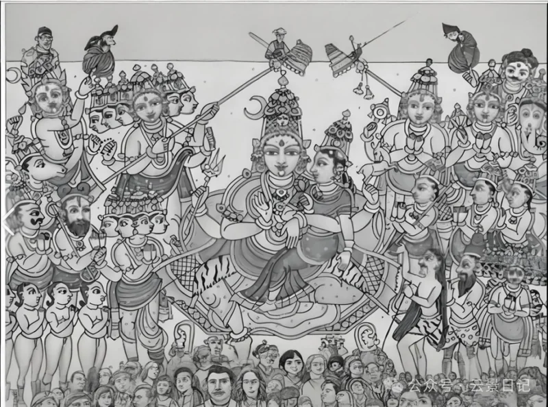 一边挂着商羯罗(古印度哲学家)的画像,这种混搭的风格确实挺不错的