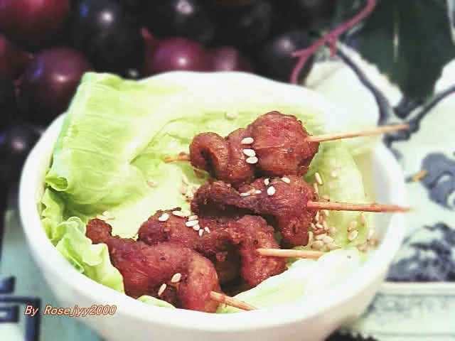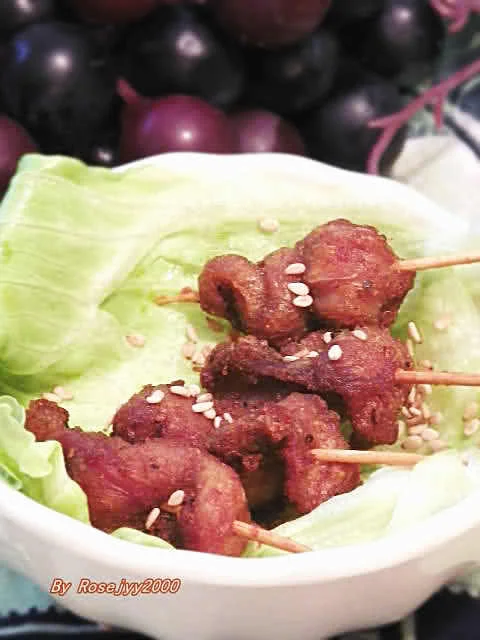 三、穿肉时不要穿得太紧,象S型,留适当的空间,让肉均匀地容易熟。