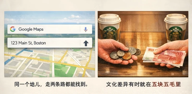 我在美国星巴克买杯咖啡,花5.5美元,给了服务生20美元。你猜人咋找零?先给俩50美分钢镚儿,再递四张1美元,最后才给那张10美元的。可咱北京星巴克的小姐姐,那顺序完全反过来,先给大钞,再把钢镚儿“啪”地拍你手里。