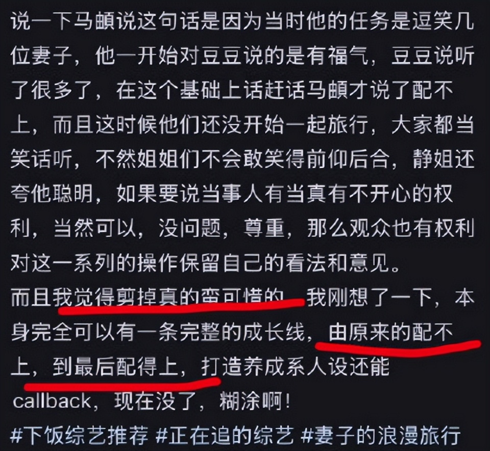 结果观众发现,在回顾第一期节目时,马頔说的那句话竟然被剪掉了。