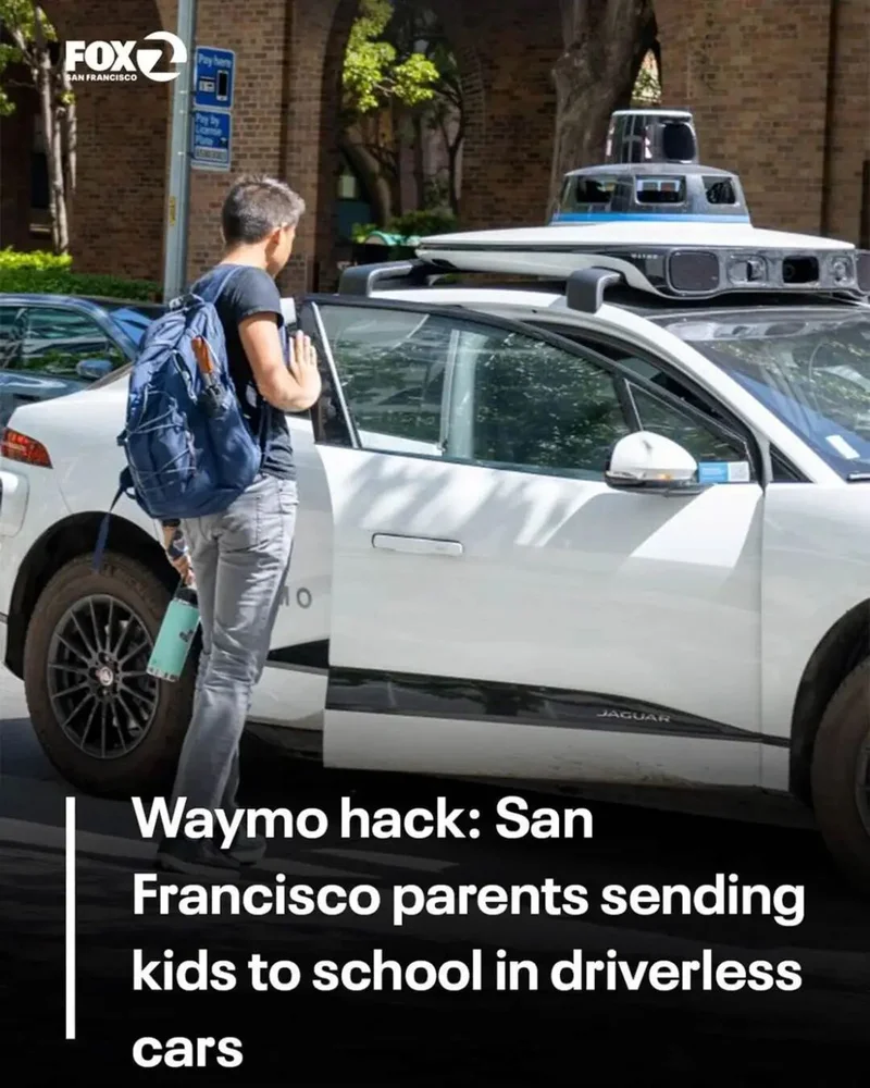 对咱们来说,可能难以想象,但这就实打实地在美国发生了:很多人会选择打一辆Waymo Robotaxi,接孩子上下学。