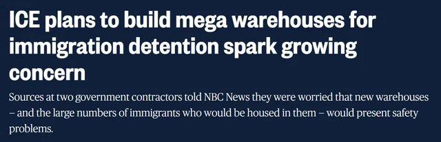 报道指出,目前已有至少三处大型仓库被联邦政府购入,计划用于移民拘留用途。
