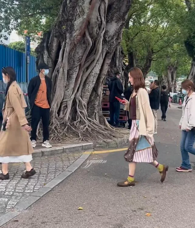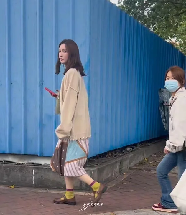 这天金晨穿着裙子搭配撞色袜子,打扮休闲又时尚,她边走路边刷手机,身边还跟着好几位助理,咋一看似乎和平时没什么区别。不过仔细看还是能感受到金晨心事重重,以往她被偶遇总是笑意盈盈,这次却没了标志性的笑容,眼神看着也颇为警惕。