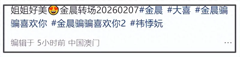 2月7日,有网友分享出在澳门偶遇金晨拍戏的画面,这也是金晨逃逸风波后首次露面。