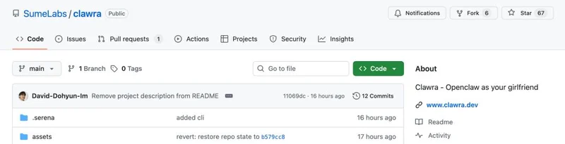 最最重磅的是,Clawra的项目在GitHub上开源了。这意味着,每个人都将有一个龙虾女友了。