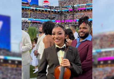 在2月8日(周日)的超级碗(Super Bowl LX)中场秀现场,Bad Bunny的舞台动员了数百名表演者,其中不少来自湾区。旧金山职业小提琴演奏家 Rose Crelli 就站在离Bad Bunny很近的位置,随着音乐拉响旋律——她后来回忆,那一刻“像做梦一样不真实”。