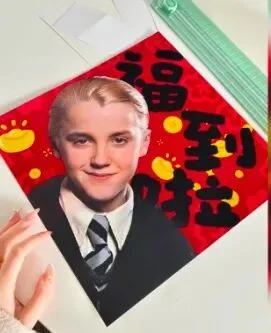 随着这一“福卡风潮”的不断蔓延,社交媒体上开始出现了一些非常有创意的“马尔福五福版”作品。比如,有网友将德拉科·马尔福的魔杖,画成了能喷出“福”字的“魔法杖”;还有人把斯莱特林的院徽重新设计,加入了传统的中国祥云图案;更有网友把马尔福P上了唐装,仿佛一位准备参加春节联欢晚会的巫师。