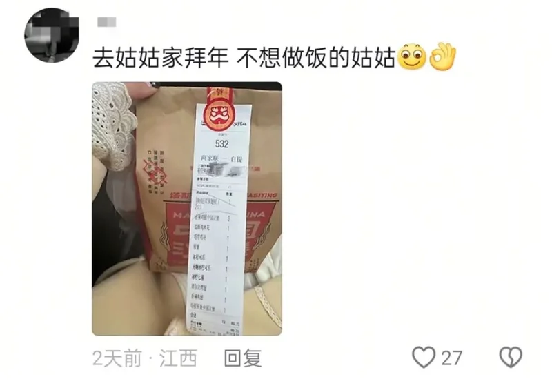 “长辈们过年主打一个走亲,而00后们却主打一个访友。送的礼、办的席有一种不管不顾的美,自己心情好了,也不会找茬跟长辈们吵架,连父母的唠叨都能忍则忍。”