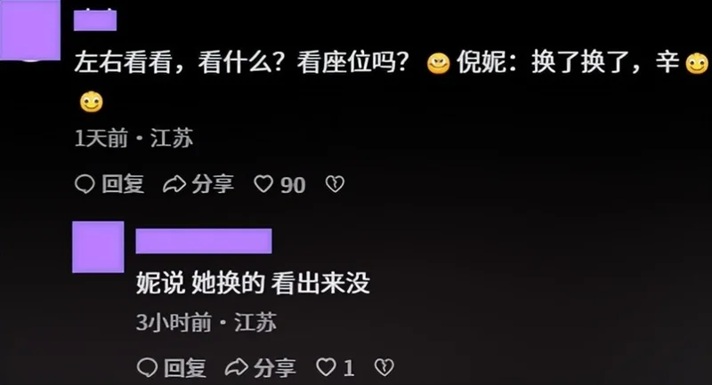 两个人明显关系不错,有啥说啥,而且也没管镜头拍不拍,看嘴型应该就是在讨论换坐的问题。