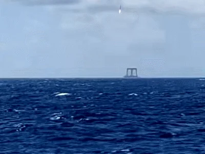 在整个画面之中,大家从动态图像都可以看到,其长征十号一级在回收溅落的时候,执行了长征十号一级悬停,发动机点火,然后再次回收过程,这不是乱说吧?大家都可以看到。