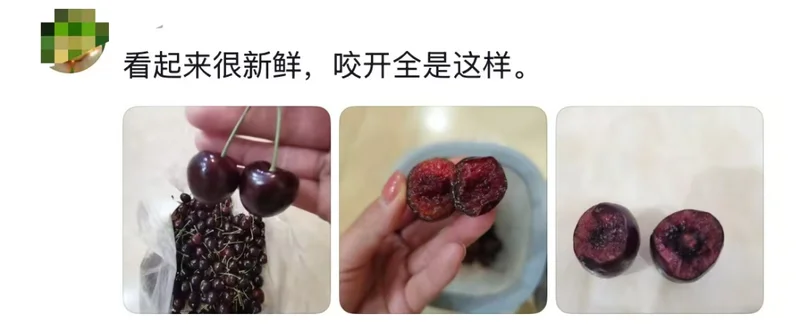 然而,时间到了现在,市场上基本已经没了新鲜的车厘子,全是已经过季的库存烂果。