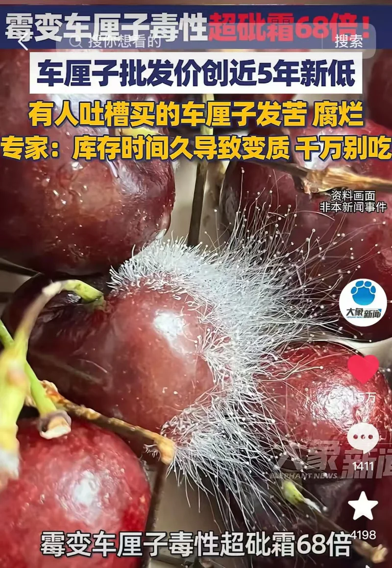 所以一旦霉变的车厘子,真的不要觉得可惜,赶紧扔,一口都不要尝。