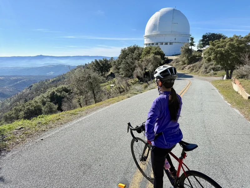 祝老朋友回归新版开张。2周前和老婆大人骑硅谷的4大名山之一的Mt Hamilton。 汉密尔顿山海拔1300米,是整个旧金山湾区海拔最高的四座山峰之一,顶部建有1888年投入使用的著名Lick天文台,也是全球首座建在高山顶的天文台,拥有当时全球最大的折射望远镜。