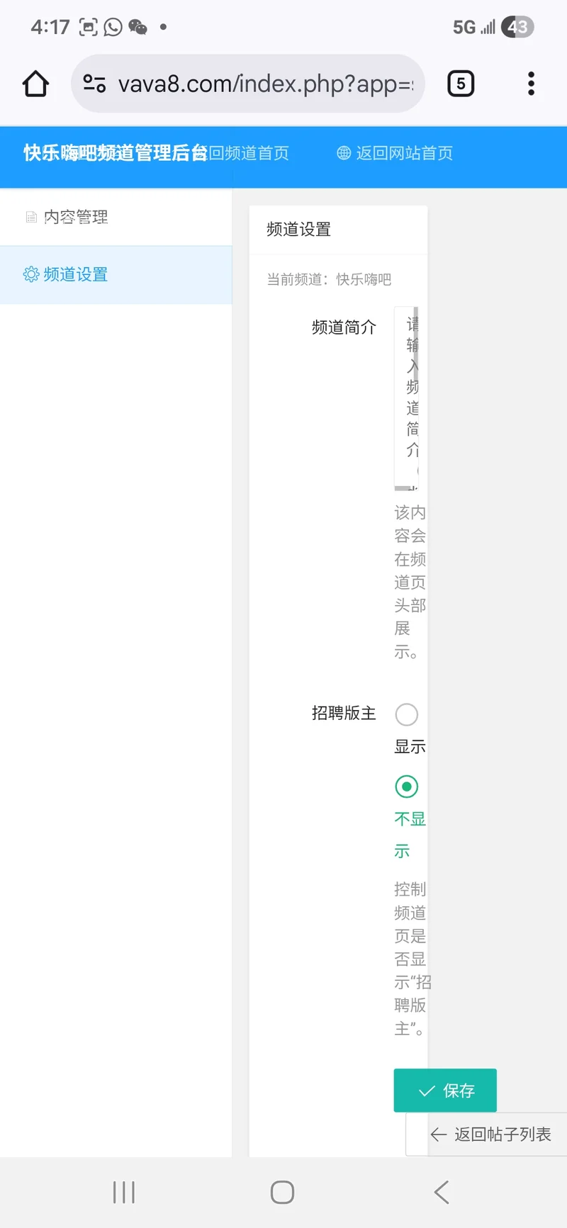 1)因为我是一直用手机上留园,进入后台管理后,竖屏显示不完全,横过来屏幕就没有问题,用着很不方便,不知道我是手机的设置问题,还是发吧的设置问题,截屏如下