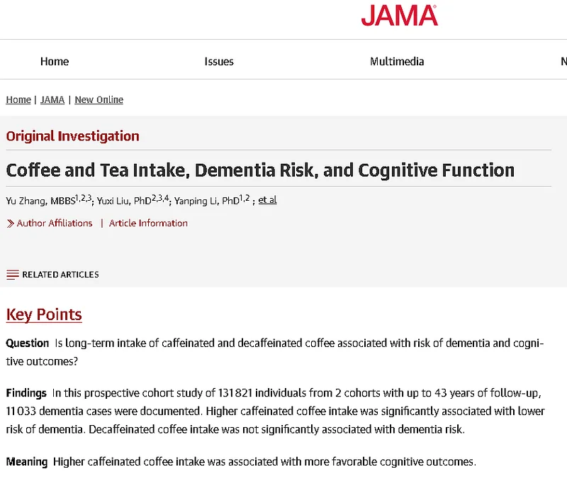 这项研究发表在《美国医学会杂志》。研究负责人表示,他们并不是鼓励原本不喝咖啡的人开始喝,而是说: