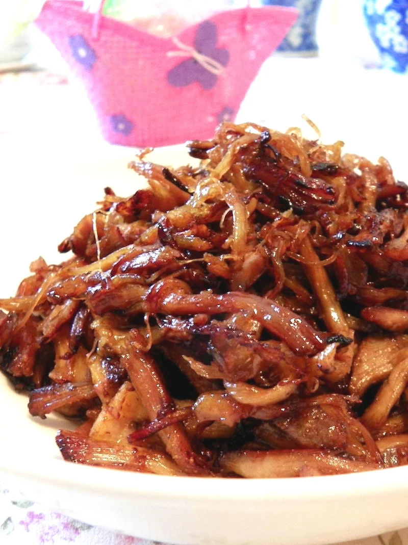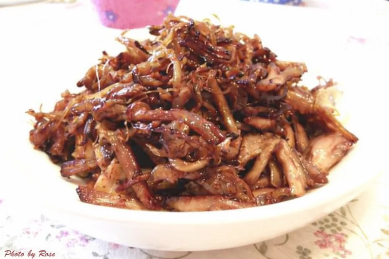 此菜咸鲜味,可下饭也可下酒,牛肉、猪肉也可参考些方法处理。谢谢!!