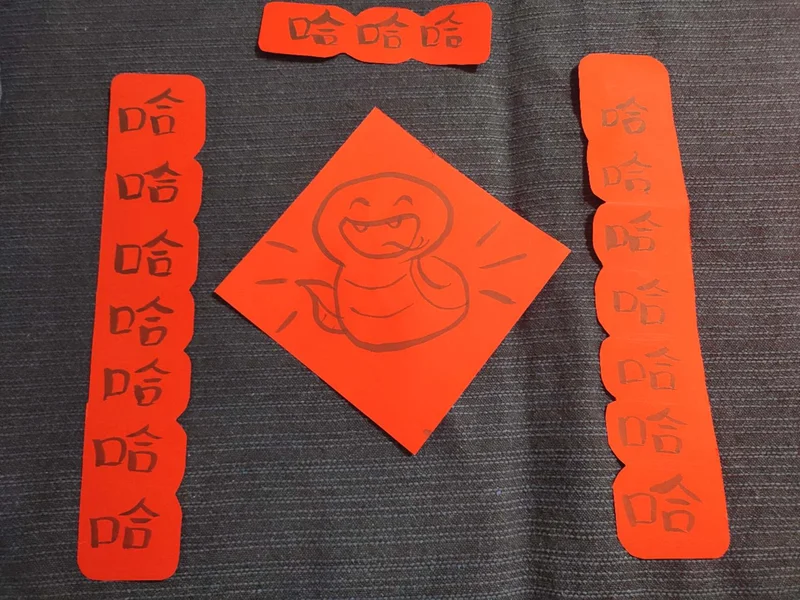 这是娃娃去年写的春联,艺术成分有三层楼那么高,哈哈哈!