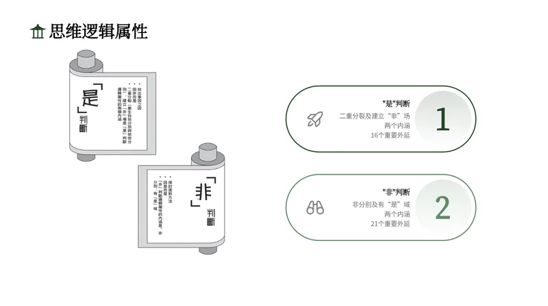 综上所述:二重分裂(产生自他分别与他他分别)、建立“非”场是“是”判断逻辑属性的两个内涵。