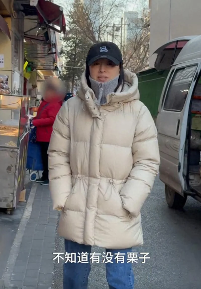 晒出的视频中,现身菜市场买菜的董洁头戴一顶黑色棒球帽,身穿一件米白色中长款连帽羽绒服,腰部有抽绳收腰,整体版型蓬松保暖;内搭一件浅灰色高领针织衫,领口较高,与羽绒服形成层次感;下身搭配蓝色牛仔裤,整体穿搭风格休闲又保暖。