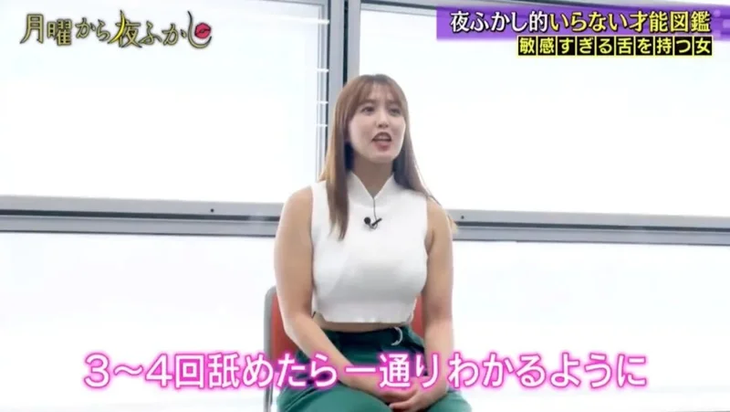 令人惊讶的是,不论是较为复杂的「渡边」,还是笔画较多的「佐藤」,日里麻美只需用舌头舔上一圈,就能准确地猜中印章上面的姓氏。