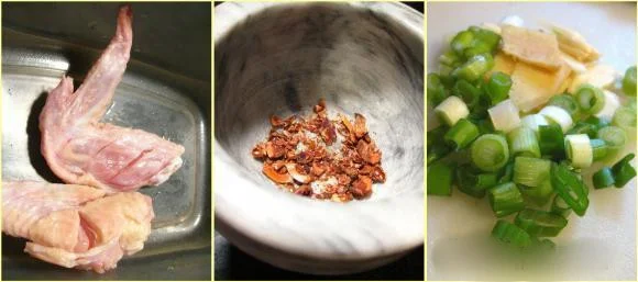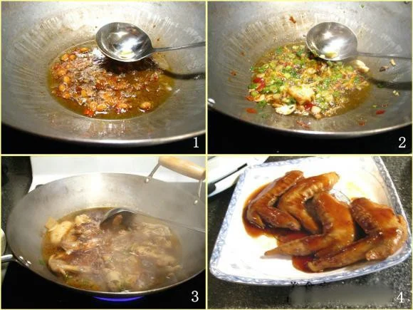 鸡翅,炸花生碎,料酒,味精,郫县豆瓣酱,大料,泡椒,酱油。